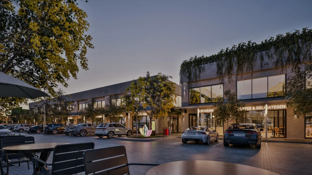 El desarrollo contempla locales comerciales, oficinas, espacios de salud, estaciones de servicio, servicios para el automotor y zonas recreativas, todo dispuesto estratégicamente para garantizar accesibilidad, circulación fluida y una identidad arquitectónica coherente.